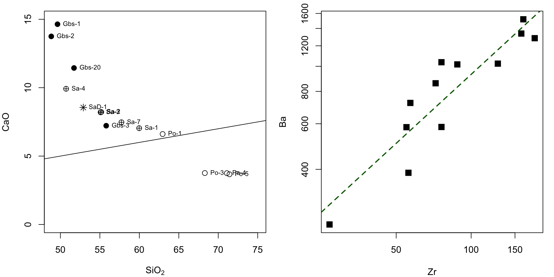 binary("Zr","Ba",log="xy",pch=15,cex=1.5,col="black",fit=TRUE)